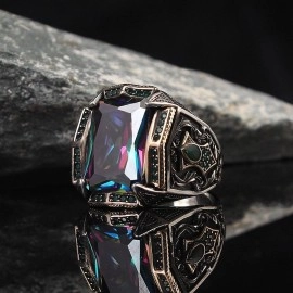 Стильний розкішний чоловічий перстень з Містик топазом стане чудовим подарунком! Кільце складається з ювелірного сплаву та покрите сріблом 925 проби. Гарний великий камінь переливається в обрамленні маленьких камінчиків. Характеристики товару: Ширина: 19 мм Склад: ювелірний сплав, вкритий сріблом Вставка: Містик топаз Кра..